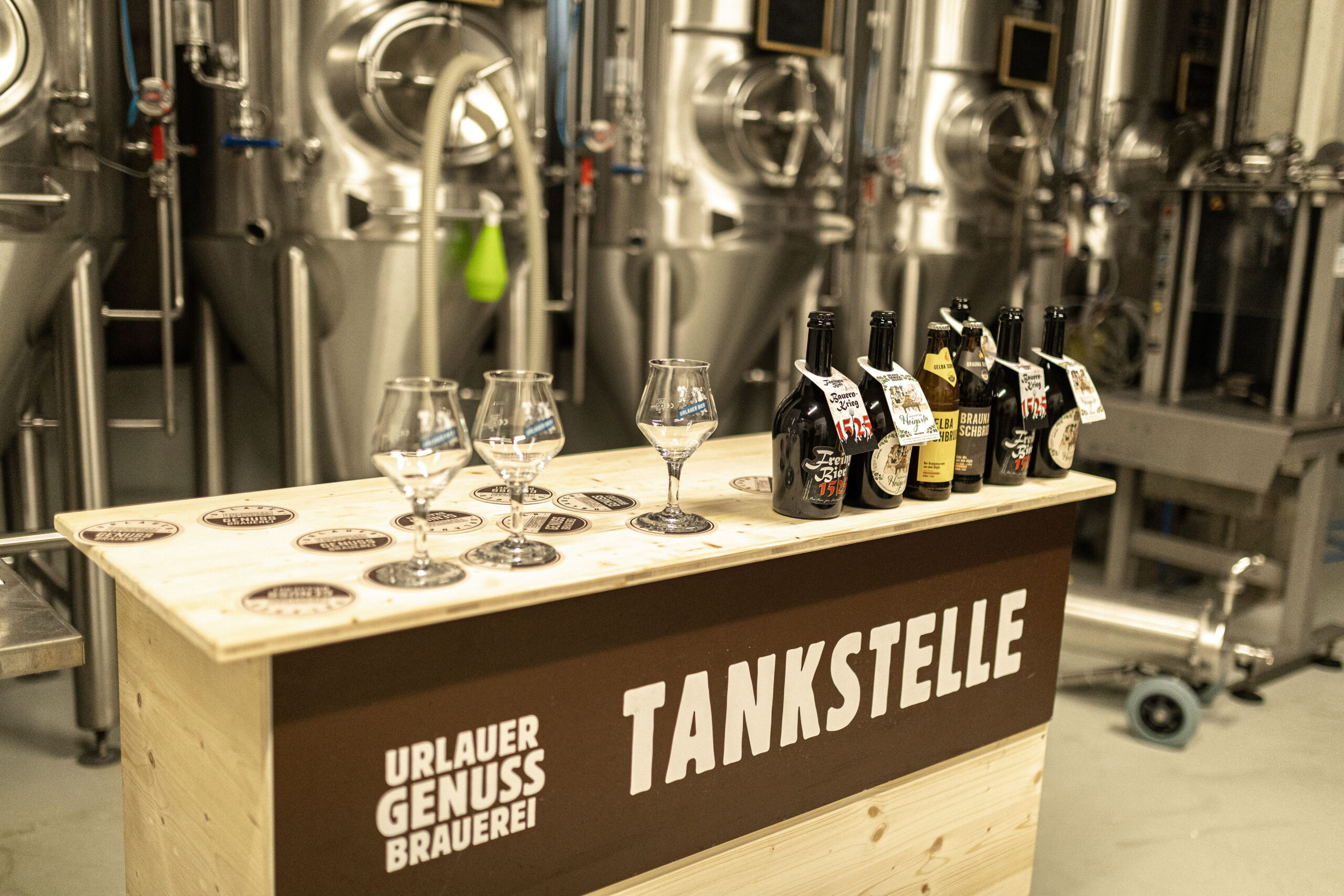 Erleben Sie eine gesellige und kurzweilige Bierprobe in unserem Gär- und Lagerkeller und verkosten Sie handwerkliche Brauspezialitäten aus unserer kleinen, aber feinen Urlauer Genussbrauerei. Für den Fahrer gibt’s Radler oder „brauna ond gelba Schbrudl“.