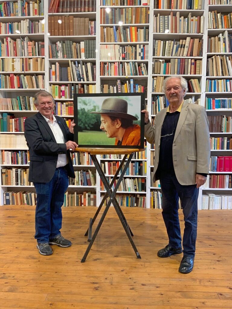 In einem bewegenden Moment übergab der Historiker Prof. Dr. Wolfram Wette das Porträt seines verstorbenen Bruders Bernhard Wette an die Allgäuer Genussmanufaktur eG. Gemeinsam mit Vorstand Alois Peter erinnerte er an den renommierten Antiquar, Schriftsteller und Buchkenner, der 2015 in Urlau verstarb.